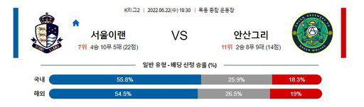 서울이랜드가 최근 6경기 중 5경기에서 언더(2.5 기준)를 기록한 점, 안산도 최근 7경기 중 5경기에서 언더(2.5 기준)를 기록한 점을 고려하면 언더(2.5 기준)의 가능성이 높겠다. 또한 후술하겠지만, 서울이랜드는 좋지 못한 경기력으로 4경기 연속 무승부를 기록하고 있는 상황. 반면 안산은 최하위에 머물러있으나, 5월 말 첫 승 이후 4경기에서 단 1패밖에 허용하지 않고 있다. 최근 경기력으로만 보면 안산이 더 우위에 있는 상황. 때문에 원정 경기임에도 최소 무승부를 따낼 것으로 보인다. 서울이랜드가 홈에서 7경기 중 5번의 무승부를 기록하고 있다는 점도 참고하면 좋다. 무승부 / 언더(2.5 기준) 접근을 권장한다.