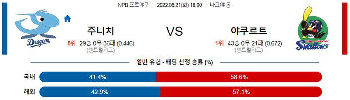 【NPB】 6월 21일 주니치 vs 야쿠르트