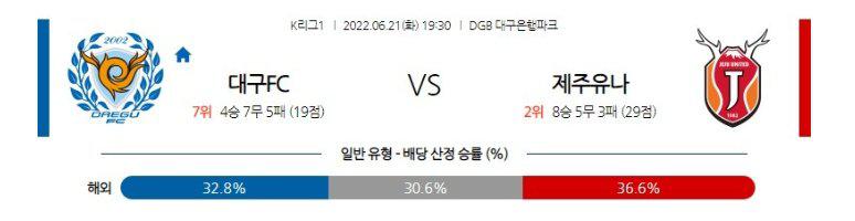 대구의 최근 5경기 중 4경기가 오버(2.5 기준)였다는 점, 제주도 3톱을 필두로 한 득점력이 매우 뛰어나다는 점을 고려하면 오버(2.5 기준)의 가능성이 높겠다. 또한 후술하겠으나, 대구는 최근 흐름이 좋지만 무승부의 비율이 꽤나 많은 상황. 최근 8경기에서 6무를 기록 중이다. 리그에서 무승부가 가장 많은 팀. 제주의 흐름이 상당히 좋지만 3일간격으로 치러지는 리그 경기에서 비행기까지 타야 하는 원정 일정은 부담스러울 수 밖에 없다. 직전 맞대결에서도 무승부를 거뒀기 때문에 이번 일정도 무승부를 예상한다.