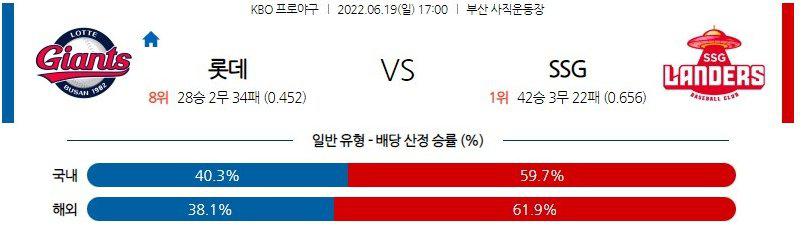 SSG는 최근 3경기에서 상하위 타선의 구분 없이 적시타가 나오고 있고 이태양 투수는 원정경기에서 강점을 보였다. 반면, 복귀전을 치르게 되는 김진욱 투수는 퓨처스리그에서 4경기 2패, 4.26을 기록했는데 6월12일 LG와 경기에서 5이닝 5실점 패배를 기록하고 1군 무대에 복귀한다는 것이 불안 요소. SSG 승리 가능성을 추천 한다.