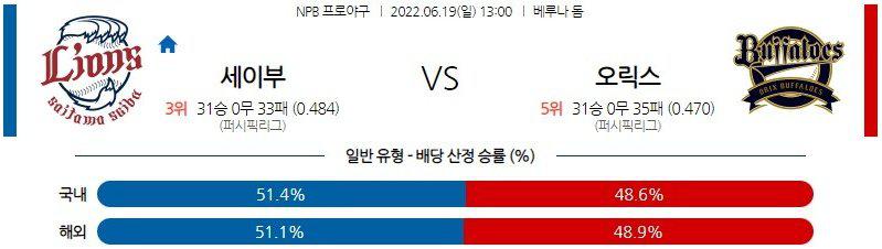 리그 최고의 완성형 에이스 야마모토 요시노부 투수의 1볼넷 노히트노런 승리(2-0)로 6연패에서 벗어난 오릭스 이다. 불펜의 소모가 없었다는 것이 일요일 경기 중후반 힘싸움에서 큰 힘이 되어줄 것이다. 오릭스 승리 가능성을 추천 한다.
