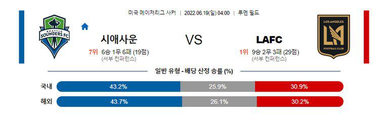 로스엔젤레스의 공격력이 뛰어나 최근 4경기에서 3번의 오버(2.5 기준)가 나온 점, 시애틀도 최근 5번의 경기에서 3번의 오버(2.5 기준)가 나온 점을 고려하면 오버(2.5 기준)의 가능성이 높겠다. 시애틀의 후반전 실점 비율, 로스엔젤레스의 후반전 득점 비율이 높은 것도 참고하면 좋다. 또한 시애틀의 최금 홈 기세가 좋지만, 중위 레벨의 팀들과의 경기에서 거둔 연승이며, 이번 시즌 상위 팀들과의 경기에서 좋은 모습을 보여주지 못하고 있기 때문에 홈 4연승을 이어가기는 어려울 것으로 보인다. 다만, 로스엔젤레스의 최근 분위기도 썩 좋지 않기 때문에 패배까지는 허용하지 않겠으며 무승부가 적당한 선택지가 되겠다. 무승부 / 오버(2.5 기준)를 추천한다.