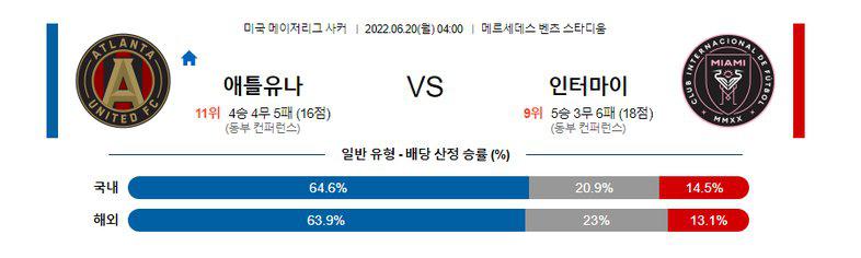 애틀란타가 실점이 잦아 직전 5경기 연속 오버(2.5 기준)가 나온 점, 인터마이애미도 공격력이 살아나 최근 6경기 중 4경기에서 오버(2.5 기준)가 나온 점을 고려하면 오버(2.5 기준)의 가능성이 높겠다. 또한 애틀란타는 주전 골키퍼를 시작으로 수비진이 부상으로 초토화 된 상황. 실점 빈도도 매우 잦다. 여기에 '핵심 1선' 알마다까지 징계로 나올 수 없는 상태로 사실 상 2군에 가까운 전력. 최근 리그 흐름이 좋은 인터마이애미의 승리가 예상된다.