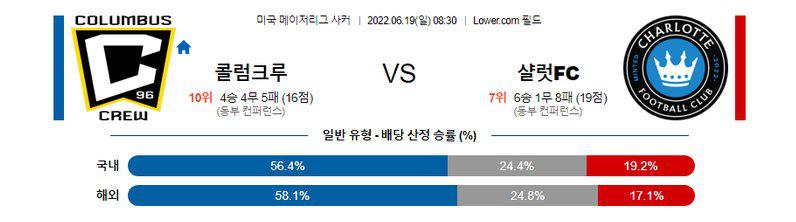양 팀 주소모두 득, 실점이 적은 편이 아니라 최근 5경기 중 3경기에서 오버(2.5 기준)가 나온 점을 고려하면 오버(2.5 기준)의 가능성이 높겠다. 또한 콜럼버스는 지난 두 시즌에 비해 순위를 유지하지 못하고 있지만, 홈에서는 그래도 6경기 3승을 거두며 승점을 쌓고 있다. 반면, 샬럿은 원정에서 단 1승도 기록하지 못하고 있는 상황. 콜럼버스가 측면 자원인 에티엔 주니어를 활용한 측면 공격으로 샬럿을 무너뜨릴 것으로 예상된다.