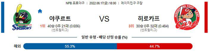 【NPB】 6월 17일 야쿠르트 vs 히로시마
