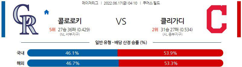 【MLB】 6월 17일 콜로라도 vs 클리블랜드