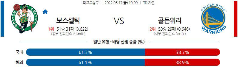 벼랑끝에 몰리게 된 보스턴 이지만 홈에서 볼이 없는 상황에서의 움직임이 좋았고 스크린을 통해 공간을 만들어낸 후 와이드 오픈을 만드는 패턴플레이의 완성도 역시 원정경기 보다는 올라가는 모습을 보여주고 있다. 보스턴 승리 가능성을 추천 한다.