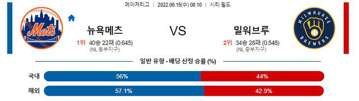 ◦ 뉴욕 메츠 (40승 22패 / NL 동부 1위)