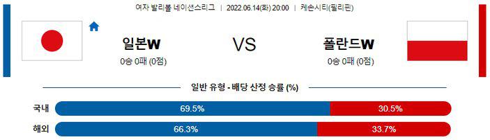 폴란드가 제 전력이 아니다. 아무래도 스마르젝과 스타시악, 두 쌍포를 주소모두 잃은 일본에 맞서기에는 쉽지 않을 전망이다. 일본 특유의 스몰하고 디테일한 배구가 강점을 보여주기 쉬울 듯하고, 여기에 코가 사리나가 굉장한 모습을 보여주고 있어 코가에 맞설 카드가 폴란드가 마땅치 않다. 일본의 승리를 예상하며, -1.5세트 핸디캡 승리까지 같이 봐도 좋다. 언오버 기준점이 178.5점인데, 폴란드가 높이는 그래도 있는 팀이라서 한 세트 정도는 따 4세트 가능성도 높고 생각보다 기준점이 낮다. 오버도 나쁘지 않은 선택이 될 수 있다.