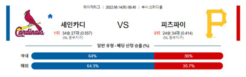 【MLB】 6월14일 세인트루이스 vs 피츠버그