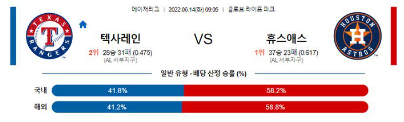 【MLB】 6월14일 텍사스 vs 휴스턴