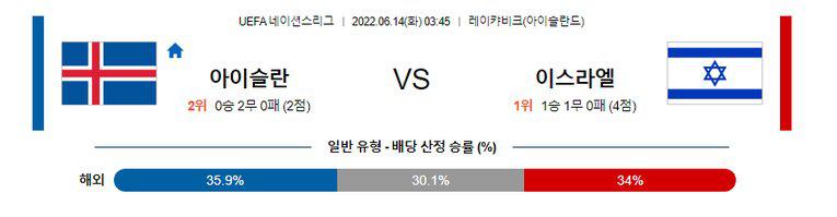 【UEFA네이션스리그】 6월 14일 아이슬란드 vs 이스라엘