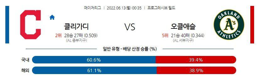 【MLB】 6월13일 클리블랜드 vs 오클랜드