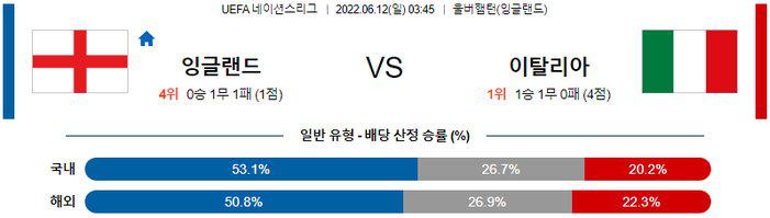 【UEFA네이션스리그】 6월 12일 잉글랜드 vs 이탈리아