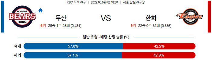 【KBO】 6월 9일 두산 vs 한화
