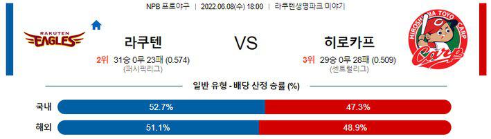 【NPB】 6월 8일 라쿠텐 vs 히로시마