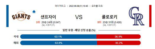 【MLB】 6월8일 샌프란시스코 vs 콜로라도