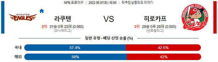 【NPB】 6월 7일 라쿠텐 vs 히로시마